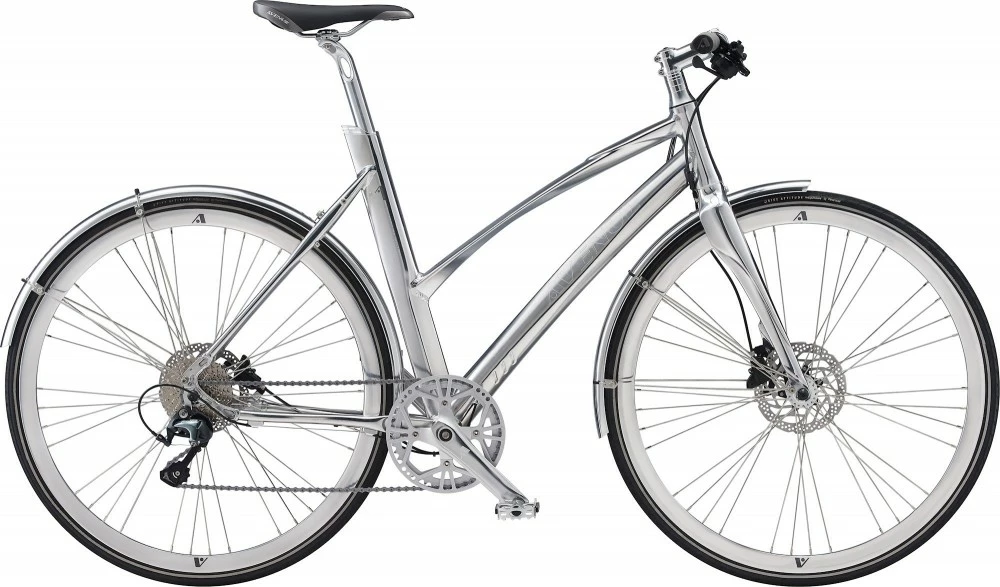 Avenue Airbase 2021 Metal i Polished Silver er en helt ny farve i både Broadway og Airbase serien. Airbase Metal Polished Silver leveres med 10 udvendige Shimano Tiagra gear og har hydrauliske skivebremser på begge hjul. Airbase Metal er monteret med et aluminiums 46T kranksæt i mat sølv samt frempind og styr ligeledes i sølvfarvet aluminium. Der sidder en Shimano Tiagra SL-4700 1×10 skifter til gearne på styret samt grå/sorte greb og sort