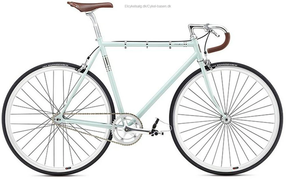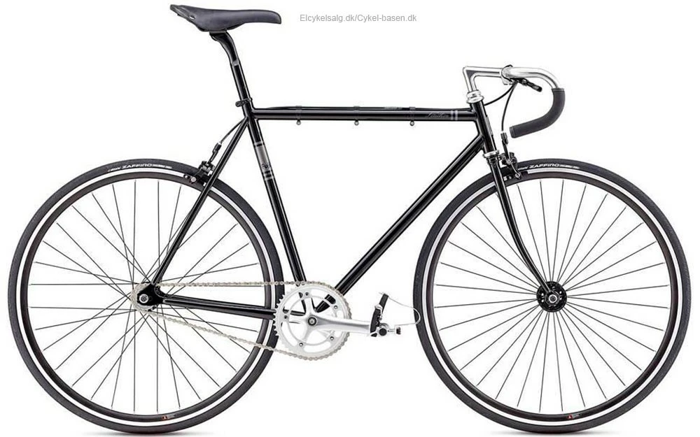 Fuji Feather retro banecykel med friløb og kaliberbremser på begge hjul, samt tåklip pedaler med spænde.