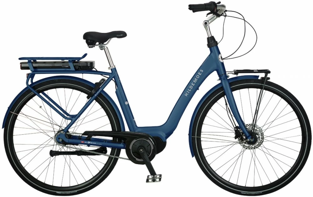 Kildemoes Anholt elcykel til damer med Koppla Egoing centermotor 250W (65Nm) og 7 indvendige Nexus gear samt fodbremse og skivebremse på forhjulet. Anholt er bygget på et aluminiums stel med lav indstigning og har en oprejst kørestilling, der kan justeres yderligere med den justerbare aluminiums frempind.