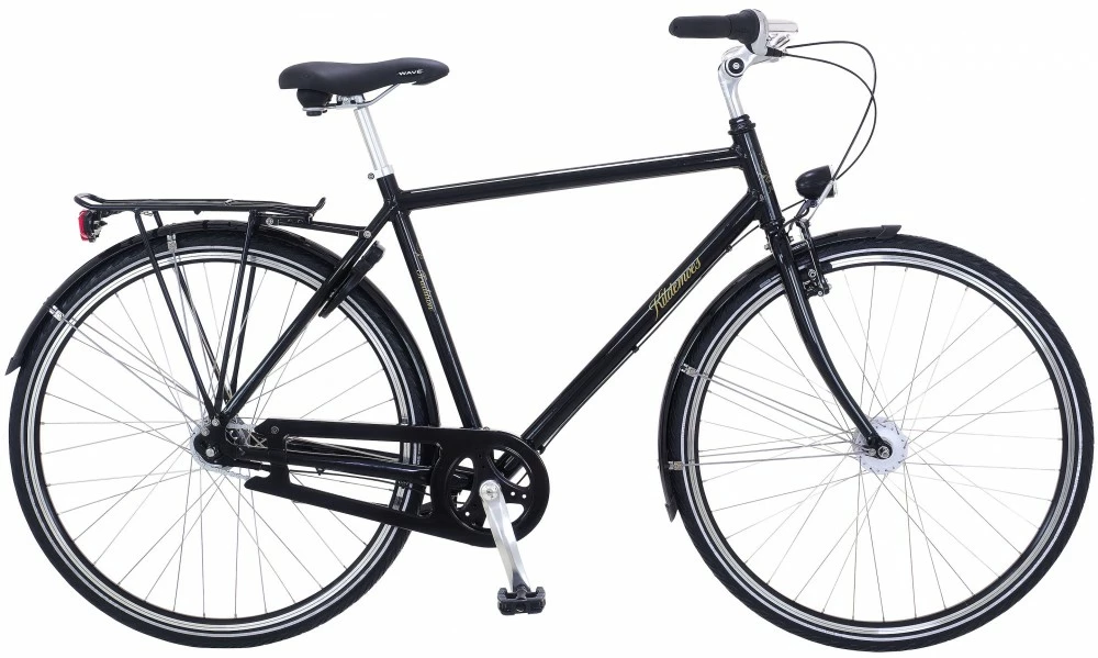 Kildemoes City Tradition herre Shopping cykel med dynamo forlygte og 7 indvendige Shimano Nexus gear samt coaster bremse og en ekstra v-bremse på forhjulet.