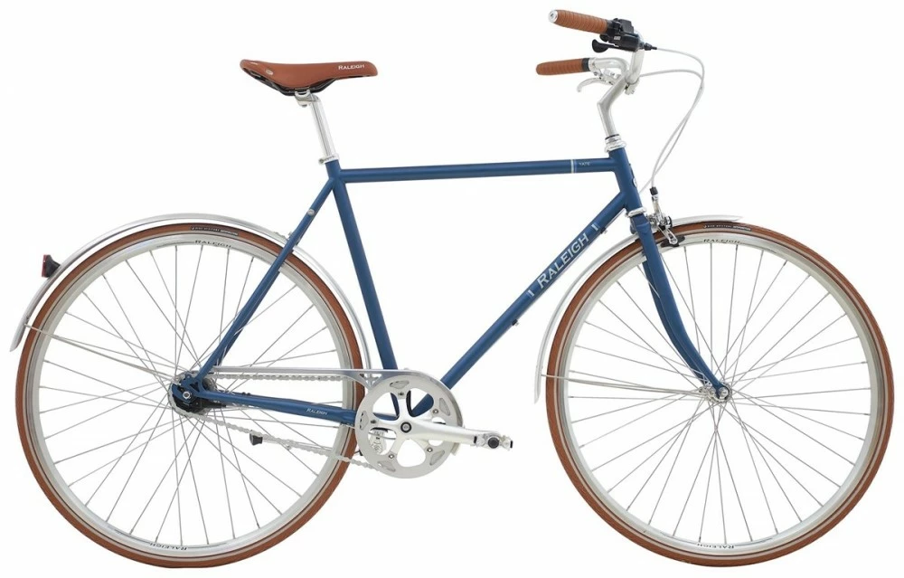 Sadlen er Raleigh’s egen naturfarvede sadel med nitter og grebene er ligeledes naturmateriale som matcher sadlen. Der sidder et Microshift skiftegreb på styret og Bike attitude brune antipuncture dæk på hjulene.