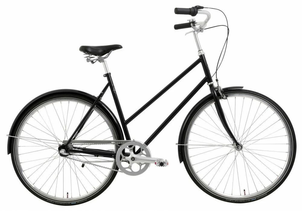 Der medfølger forkromet skærmsæt til hjul og kæde samt affjedret sadel og ergonomiske greb med tommel skifter til gearne.